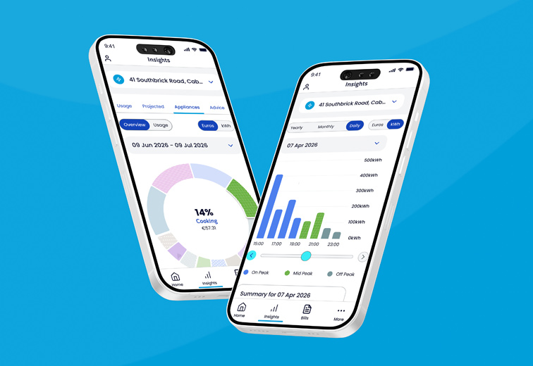Download the latest version of the Electric Ireland app to unlock smart insights with your smart meter plan. Track your energy spend anytime, anywhere—see which appliances use the most energy, view cost breakdowns, and spot usage trends with ease. It’s never been simpler to stay in control of your energy.